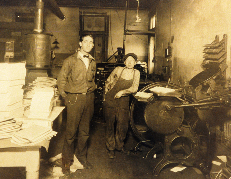 A large Linotype hot-lead typesetting machine and an archaic hand-fed press greet guests when they enter the building. The two pieces of equipment serve as immediate reminders that the company, which now prints hundreds of publications, was conceived and nurtured by a man who set type one line at a time and addressed newspapers — to his hundreds of subscribers — by hand.